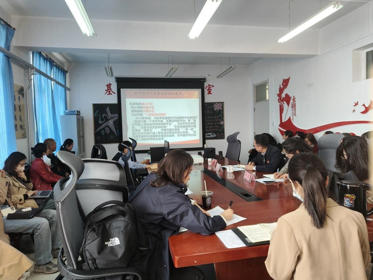 和东红教授做了以“习近平外交思想”为主题的专题讲座。和教授以习近平外交思想、中国外交政策发展为主线,从坚定奉行独立自主的和平外交政策、坚持维护国家主权和国家核心利益、推动共建人类命运共同体走深走实等方面展开,针对国际冲突问题、大国博弈等方面的事例,阐明了“百年未有之大变局”中世界之变、时代之变、历史之变正以前所未有的方式展开,为大家详细讲解了当今中国正处于什么样的国际形势,以及面对复杂严峻的国际环境开展的习近平外交思想工作。与会党员和教师对中国外交政策的发展有了更深刻的认识,纷纷表示,要多创造机会聆听精彩讲座。