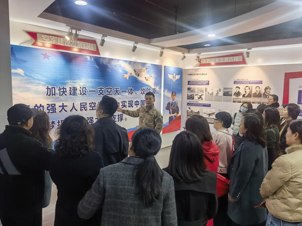 部队教官介绍了人民空军发展历程、重大任务和光荣传统,同志们认真聆听教官讲解,通过图片、文字、实物、历史重新场景深刻体会空军部队的铁血与荣光,试戴飞行模拟器体验飞行操作和感受。中国人民解放军空军经过多年的发展,已经成长为一支多兵种合成、多机种组成的现代化军队,逐步建立起自己的军事体系,在军事、救援、国际援助等发面发挥着重要作用,红色基因和军人精神激励着在场的每一名同志。