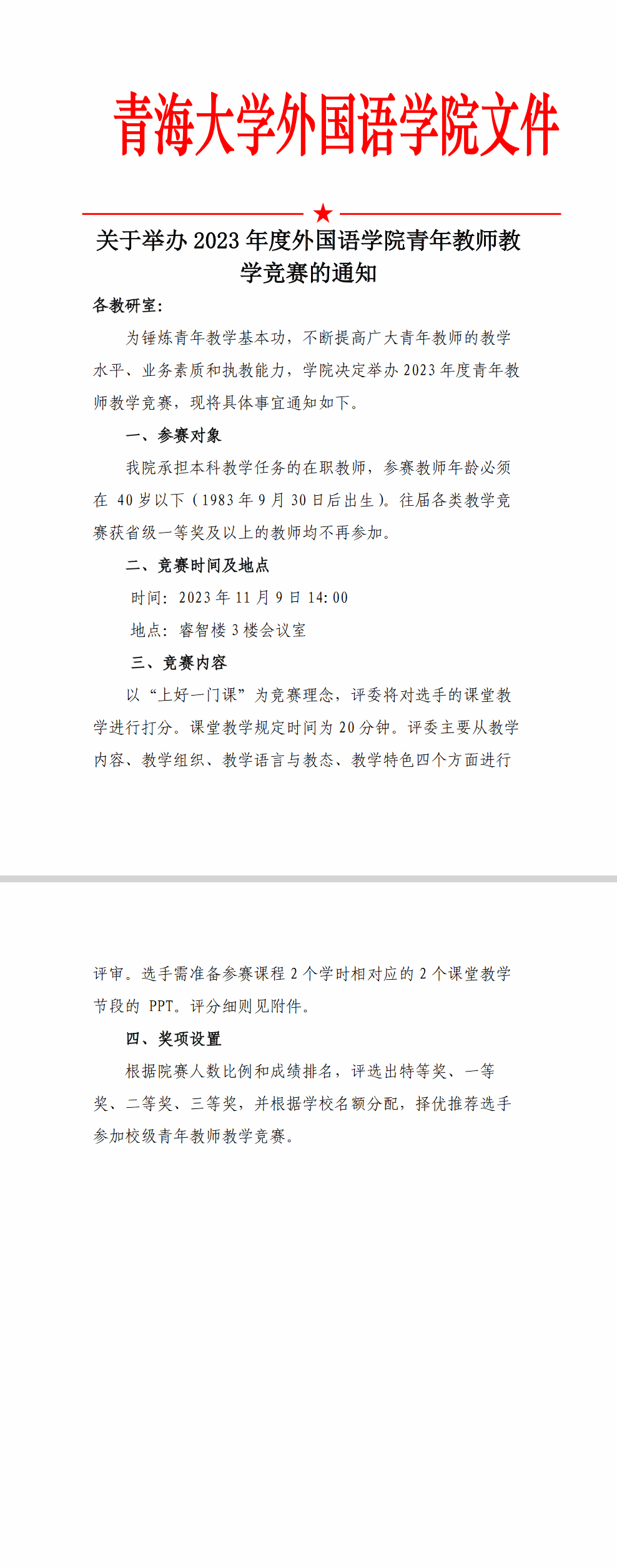关于举办2023年度棋牌游戏平台 青年教师教学竞赛的通知