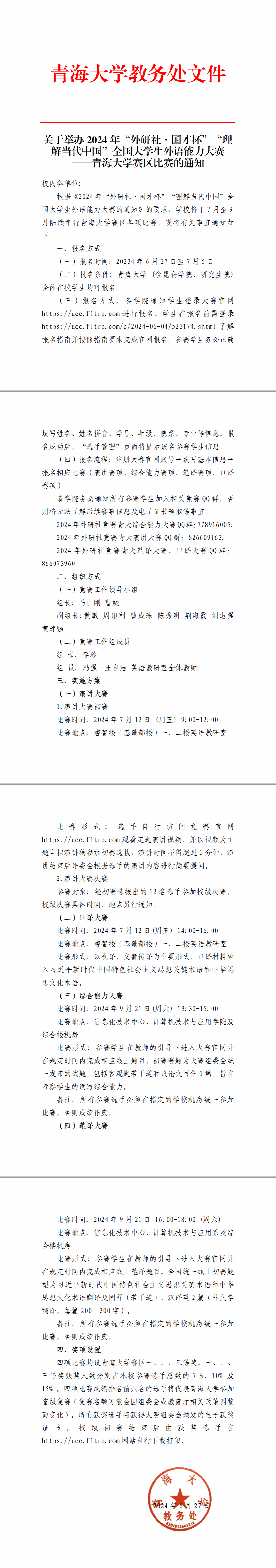 关于举办2024年“外研社国才杯”“理解当代中国”全国大学生外语能力大赛棋牌游戏平台 赛区比赛的通知