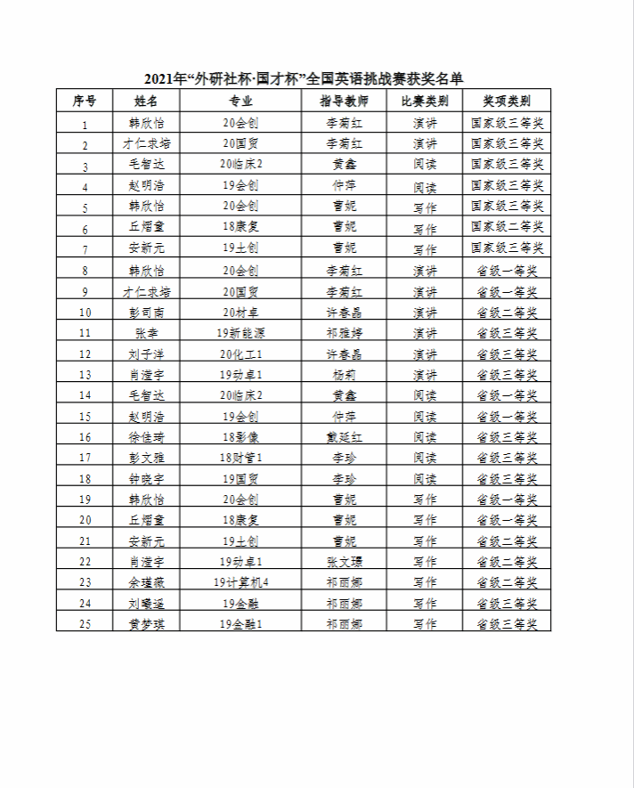 2021年外研社比赛获奖名单